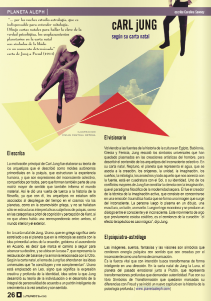 The images, dreams, fantasies and visions are symbols that contain psychic energy with meaning that are created by the unconscious as a way of communicating something. It’s the life force that with intention tries to transform itself intelligently towards a direction. In Jung’s birth chart, the moon, the planet of the emotional past, is next to Pluto, that represents deep transformations that demand authenticity. In a letter to Freud in 1911 he wrote: “I study astrology in the evenings, that is essential to understand mythology. I draw birth charts to understand the key to the psychological truth...the planetary placements in the birth chart are symbols of the libido in a particular moment”, that also relate us with collective events. With his book Symbols of Transformation his difference with Freud where marked and a new chapter in the history of depth psychology started.